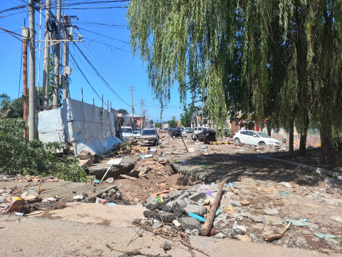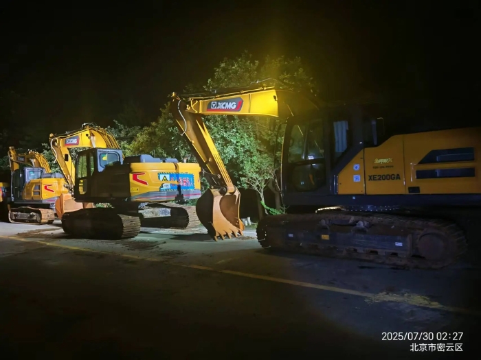 密云區(qū)S311省道、左堤路等道路告急——多處路段被洪水無情撕裂。7月30日上午,徐工XE200GA挖掘機(jī)等重型設(shè)備轟鳴而至,在泥濘與斷壁中破開一條條緊急通道。