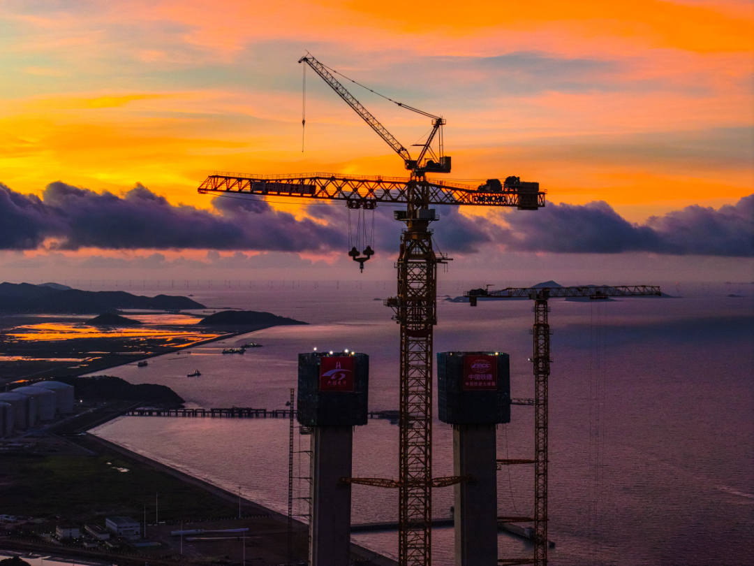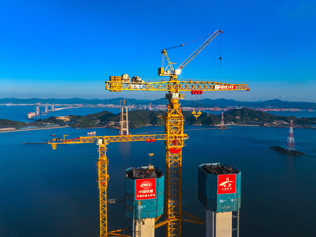 在封頂作業(yè)中,徐工塔機將百噸構(gòu)件以毫米級精度吊裝至200余米高空,硬剛10級海風,創(chuàng)造了海上橋梁建設(shè)新紀錄。多臺群塔協(xié)同作業(yè),創(chuàng)造性攻克"高空精度、抗風穩(wěn)性、吊裝效率"三大世界級施工難題,展現(xiàn)了中國裝備的卓越性能。