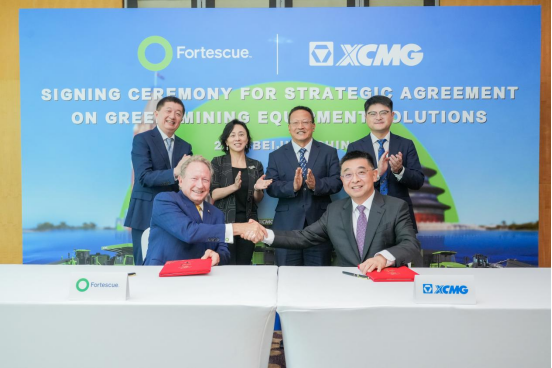 近日,徐工集團(tuán)與澳大利亞福德士河集團(tuán)(Fortescue)在北京隆重舉行綠色采礦設(shè)備解決方案戰(zhàn)略合作協(xié)議簽署儀式。徐工集團(tuán)、徐工機(jī)械董事長(zhǎng)楊東升與福德士河集團(tuán)執(zhí)行董事長(zhǎng)安德魯·福瑞斯特博士共同簽署新能源礦山設(shè)備供貨合約。徐工將在2028至2030年期間為福德士河集團(tuán)提供150臺(tái)至200臺(tái)240噸純電動(dòng)礦卡。這是迄今為止中國(guó)簽訂的最大綠色礦山機(jī)械出口訂單。