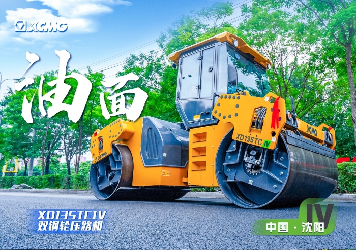 攤鋪工作結束后,由徐工XD135TCIV進行壓實。這款13噸雙鋼輪壓路機作為油面的當紅明星,采用雙頻雙幅振動系統(tǒng),前后輪可獨立振動;同時,其內置的軟起軟停功能使壓路機起步、停車均平穩(wěn)進行,避免路面、擁包,可進一步提升路面壓實質量,在提高路面平整度方面效果拔群。