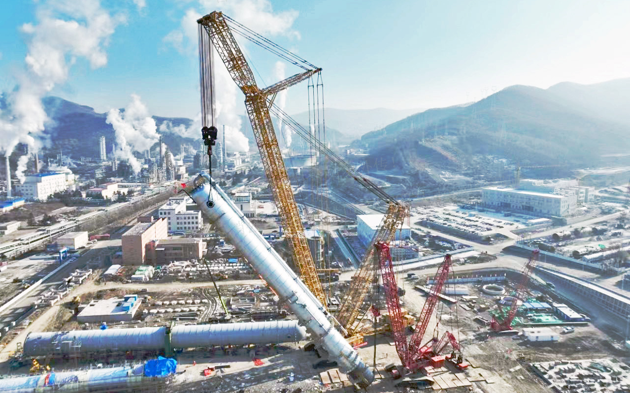 近日,徐工4000噸級履帶起重機(jī)XGC88000攜手1250噸級履帶起重機(jī)XGC17000現(xiàn)身吉林某大型石化項(xiàng)目現(xiàn)場,聯(lián)袂吊裝首臺大型塔器。