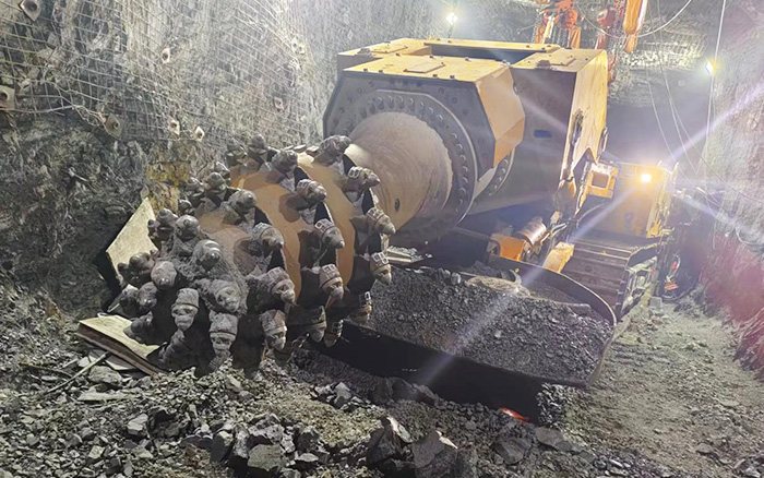 徐工XTR7/360掘進(jìn)機(jī)在礦下展開了一場硬碰硬的較量,平均兩小時進(jìn)尺1m的施工效率,引來現(xiàn)場采礦工作人員的圍觀。
