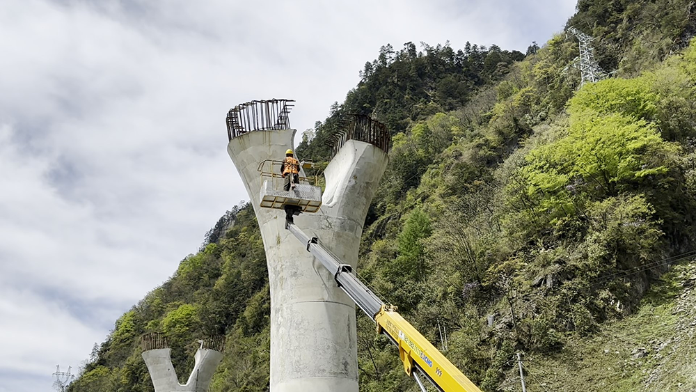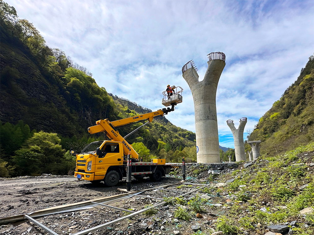施工環(huán)境惡劣,工期艱巨,徐工GKS23B高空作業(yè)車最大作業(yè)高度22.8m,最大作業(yè)幅度14.6m,采用新型高強(qiáng)度超薄鋼材,完美駕馭川西石礫沙地的施工環(huán)境,憑借穩(wěn)定、高效的舉升性能,出色完成橋墩施工任務(wù),將藍(lán)牌產(chǎn)品各項(xiàng)作業(yè)性能發(fā)揮到極致。