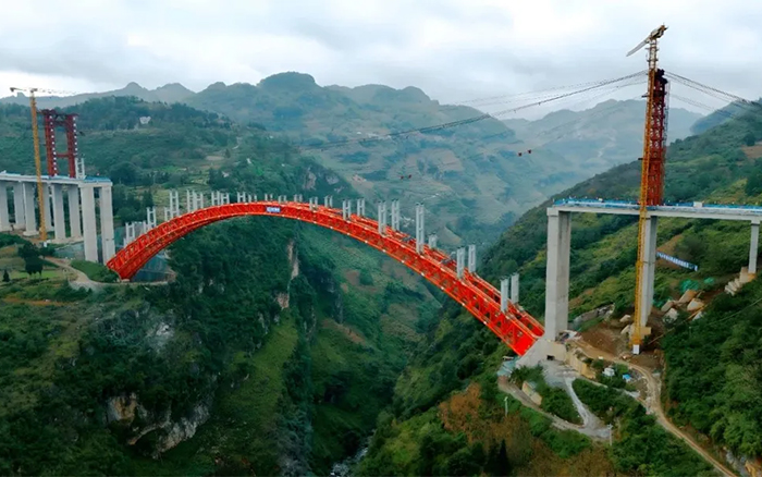 白水河特大橋全長826.5米,是納晴高速重點、難點工程,也是架通黔西北地區(qū)的重要交通樞紐。目前,全橋施工進度完成85%,遠眺建設(shè)中的白水河特大橋,猶如一道彩虹橫跨在山谷之間,氣勢恢宏,巍峨壯觀。