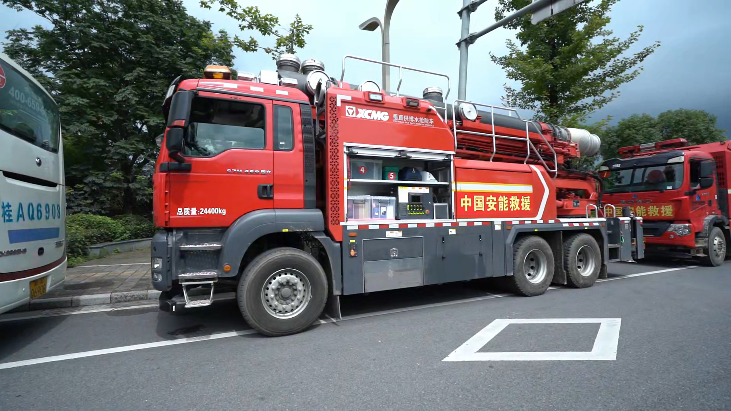 作為當(dāng)?shù)刂匾慕煌屑~,桂林火車站擁有一個(gè)占地約8000㎡的地下車庫(kù),暴雨引發(fā)的城市內(nèi)澇如灌注一般將上下兩層地下車庫(kù)淹沒(méi)至兩端入口。6月21日接到任務(wù)后,救援隊(duì)伍當(dāng)機(jī)立斷,連夜奔襲,出動(dòng)徐工GP35C垂直式排水搶險(xiǎn)車,從地庫(kù)入口處進(jìn)行抽排水搶險(xiǎn)作業(yè)。經(jīng)過(guò)72小時(shí)連續(xù)作業(yè),累計(jì)抽排水超30000m3,最終于24日上午圓滿完成任務(wù)。
