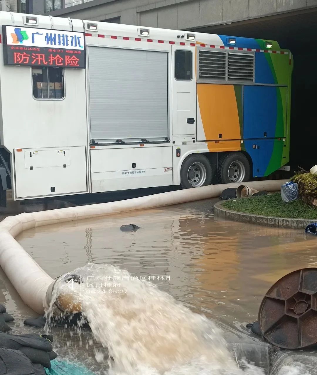除桂林站地下停車場(chǎng)之外,徐工排澇產(chǎn)品還參與了桂林丹桂府小區(qū)以及大河圩旁的地下車庫(kù)內(nèi)澇救援任務(wù)。