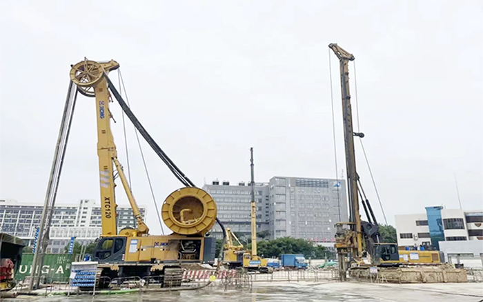 為確保施工順利,項(xiàng)目方根據(jù)地質(zhì)特點(diǎn),投入了8臺(tái)徐工設(shè)備,配合進(jìn)行砂層、入巖段施工。