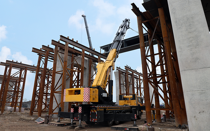 徐工SQZ8000的臂架采用五節(jié)伸縮臂,四節(jié)雙推,具有更強的起升能力及帶載伸縮能力,平均6h可完成5段結(jié)構(gòu)安裝。負載敏感比例控制系統(tǒng)提升產(chǎn)品的微動性和聯(lián)動性,方便設(shè)備的精準定位安裝,大大提升安裝施工效率,確保橋面結(jié)構(gòu)鋪設(shè)搭建任務(wù)的順暢收官。