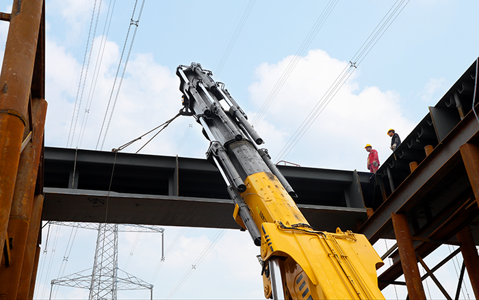 值得關(guān)注的是,施工匝道路段上方設(shè)有高壓電線,既要保證作業(yè)處于安全高度,又要確保施工平穩(wěn)高效,一般起重機無法介入施工。SQZ8000折疊臂起重機專為低矮、狹窄等空間受限工況,提供安全、穩(wěn)定、高效的設(shè)備轉(zhuǎn)運解決方案,成為本次施工的首選設(shè)備。