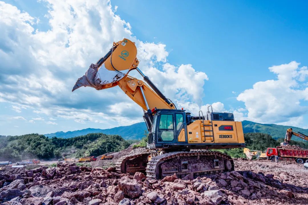 而另一款吸睛產(chǎn)品——徐工XE890KS巖石臂,專為非爆破開挖設(shè)計(jì),配備百噸級(jí)動(dòng)力,瞬時(shí)爆發(fā)力強(qiáng),挖掘力更大,重載作業(yè)更有勁。針對(duì)履帶底盤、配重、使用能效水平等方面進(jìn)行全方位提升,配備專屬作業(yè)機(jī)具“鷹鉤臂”,在非爆破礦山、地基開挖等作業(yè)場(chǎng)景中有著得天獨(dú)厚的優(yōu)勢(shì)。
