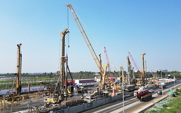 徐工旋挖鉆機(jī)、連續(xù)墻液壓抓斗、雙輪銑等基礎(chǔ)工程施工成套化設(shè)備集結(jié)出擊,參與建設(shè)南沙至珠海(中山)城際萬頃沙至興中段(以下簡稱“南珠中城際”)項(xiàng)目,助力中山邁進(jìn)大灣區(qū)軌道交通新時(shí)代。