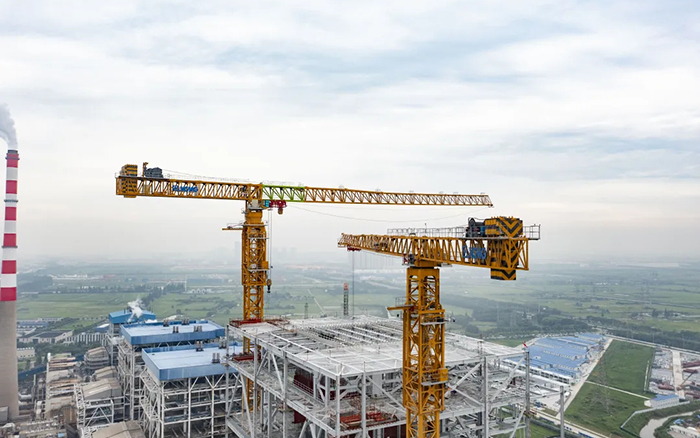側(cè)望長江畔,機(jī)器轟鳴、江水潺潺,華能太倉電廠機(jī)組擴(kuò)建項(xiàng)目施工現(xiàn)場(chǎng)一派繁忙景象,XGT3100-160S、XGT1350-64S兩臺(tái)徐工超大塔穩(wěn)穩(wěn)矗立在高聳的鋼架間吊裝作業(yè)。