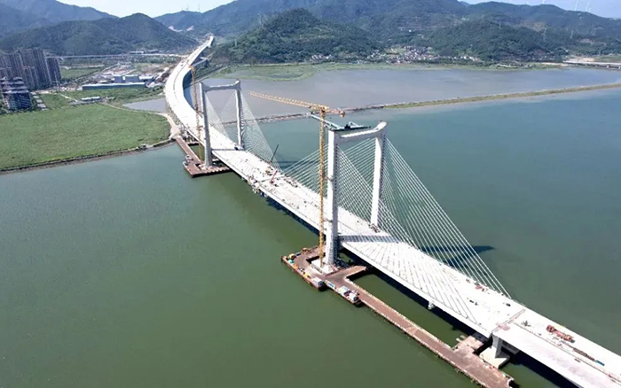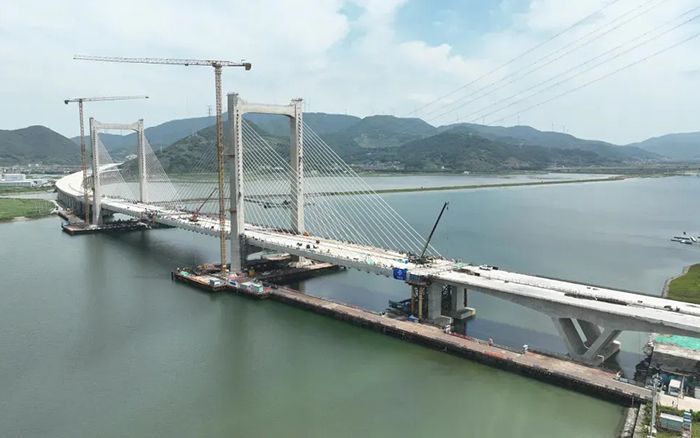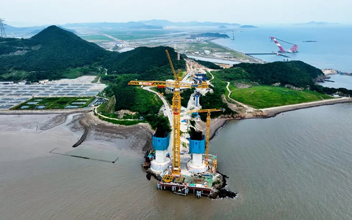 六橫公路大橋一期工程主要為陸上高速公路接線及疏港公路工程,作為一期工程關(guān)鍵施工節(jié)點——梅山水道橋,在6臺徐工塔機的全力協(xié)作下,大橋邊跨順利合龍。