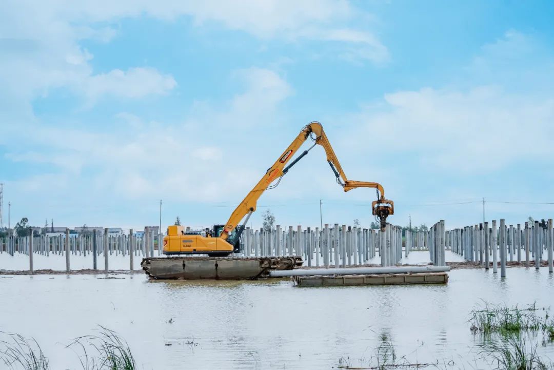 面對(duì)漁光互補(bǔ)項(xiàng)目中嚴(yán)苛的打樁要求,徐工水上打樁機(jī)憑借卓越的性能脫穎而出。