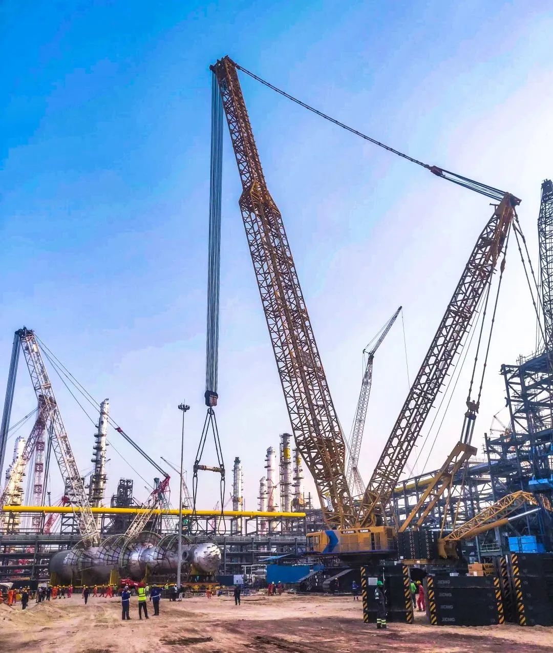 近日,徐工XLC30000(2000噸)履帶起重機現(xiàn)身海外,助力某大型石油煉化項目首臺氫化反應(yīng)器順利安裝就位。