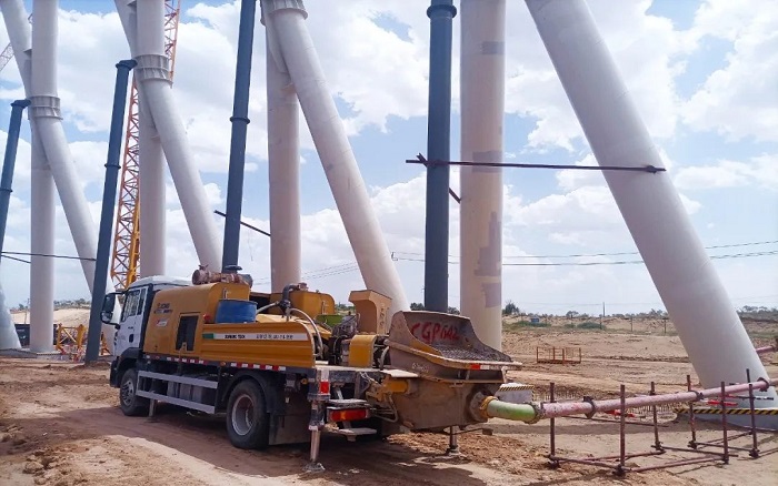 項(xiàng)目亮點(diǎn)之一的間冷塔,采用了創(chuàng)新的鋼管混凝土X柱結(jié)構(gòu),單柱高達(dá)30米,重達(dá)51.9噸。然而,隨著泵送高度的攀升,混凝土黏度急劇增加,泵送過程中極易出現(xiàn)憋壓熄火現(xiàn)象,對施工設(shè)備提出了前所未有的要求。