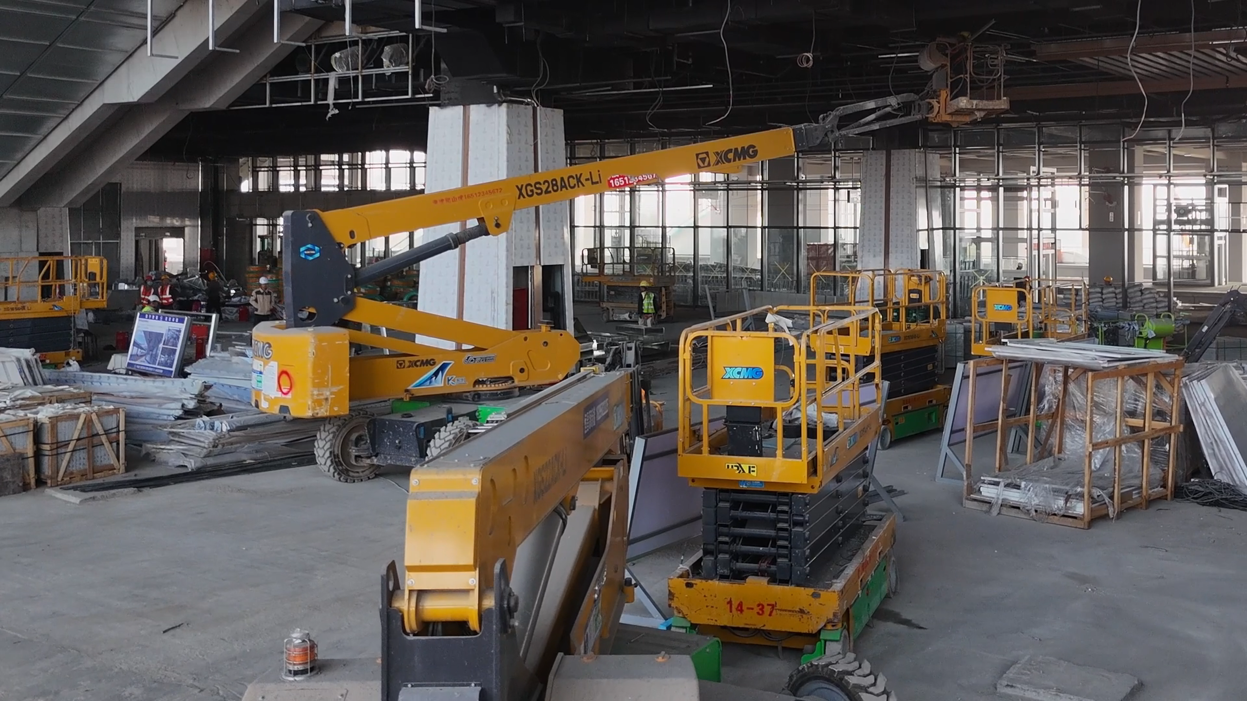 在山西省朔州火車東站建設(shè)現(xiàn)場,百臺“徐工金”高空作業(yè)裝備正熱火朝天的進行玻璃幕墻安裝及管道鋪設(shè)作業(yè),為項目的早日建成通車貢獻力量。