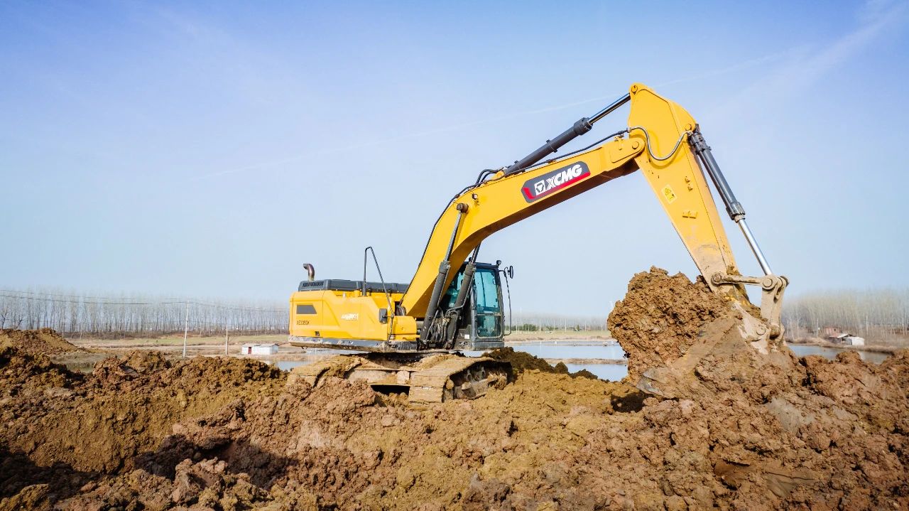 清理湖面的同時(shí)需要筑好河堤和路基,除了泥沙工況對(duì)挖掘機(jī)底盤帶來的挑戰(zhàn)之外,江南多雨天氣也給設(shè)備的整體性能提出了考驗(yàn)。