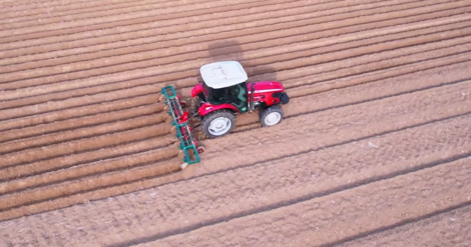 XT804-4D起壟機(jī)作業(yè),起六壟,作業(yè)速度為9km/h。