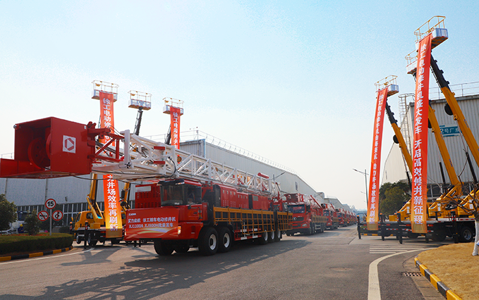 徐工XJ900和XJ1100電動修井機作為本次發(fā)車的主角亮點紛呈,憑借其卓越的作業(yè)能力,能夠輕松應(yīng)對各類復(fù)雜的修井作業(yè)需求;在設(shè)計上,它們充分考慮了安全性與高效性;采用先進的控制系統(tǒng),可適應(yīng)不同惡劣工況,精準(zhǔn)操控每一個動作,大大提高了作業(yè)效率,降低了操作風(fēng)險,確保在各類環(huán)境下都能穩(wěn)定運行。同時,穩(wěn)固的機身結(jié)構(gòu)保證了在高強度作業(yè)時的穩(wěn)定性,為油井維修工作提供堅實保障。此次批量發(fā)車意義非凡。它不僅是徐工隨車在修井機領(lǐng)域研發(fā)與生產(chǎn)實力的有力證明,更是對整個行業(yè)發(fā)展的重大推動。