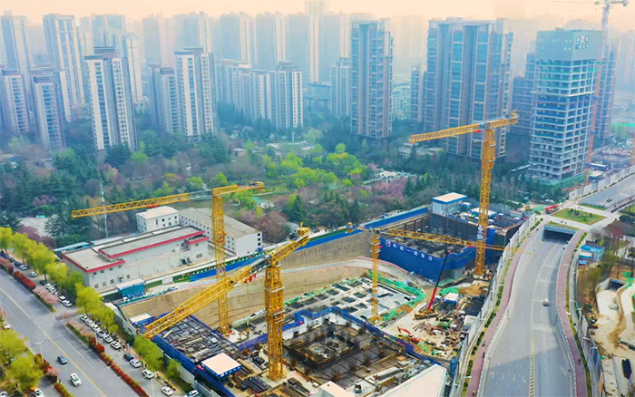 兩臺徐工超大噸位塔機(jī)XGT1350-64S是該項(xiàng)目的吊裝主力軍,主要負(fù)責(zé)鋼結(jié)構(gòu)及主體施工材料的吊裝工作,與徐工XGT600-25S、XGT6015-8S1配合作業(yè),為古城西安再添城市CBD。