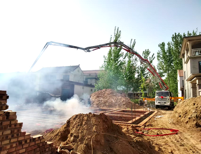 河南新農(nóng)居工地上,徐工33米泵車搭載徐汽底盤,征服泥濘坡道,靈活游走窄巷、鄉(xiāng)道,到達(dá)建筑房屋,長(zhǎng)臂延展,將混凝土精準(zhǔn)送達(dá)房屋地基。
