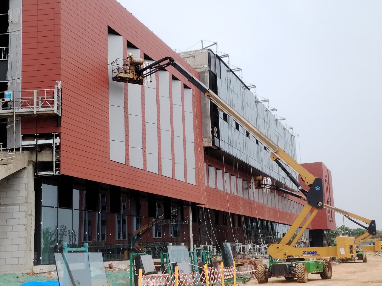 在武漢經(jīng)開(kāi)區(qū)中國(guó)電子云研發(fā)基地一期項(xiàng)目中,徐工2臺(tái)XGS28ACK-Li電動(dòng)直臂式高空作業(yè)平臺(tái)以“零排放、高精度、智能化”的核心優(yōu)勢(shì),為數(shù)據(jù)中心鋼結(jié)構(gòu)安裝及外立面部署提供了高效解決方案。該項(xiàng)目作為國(guó)內(nèi)信創(chuàng)云領(lǐng)域的標(biāo)志性工程,總建筑面積達(dá)30萬(wàn)平方米,聚焦人工智能、云平臺(tái)等前沿技術(shù),對(duì)施工環(huán)境潔凈度、能源效率及安全管理提出嚴(yán)苛要求。