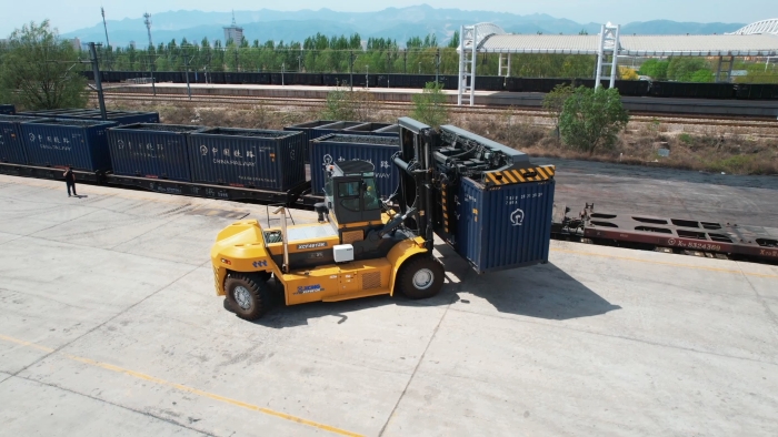 該設(shè)備搭載可旋轉(zhuǎn)式集裝箱專用吊具,操作安全性高,能夠?qū)崿F(xiàn)迅速移位、精準(zhǔn)裝卸,覆蓋鐵路20英尺干散貨箱、敞頂箱等各種箱型。既能完美避開接觸網(wǎng)安全距離,又能解決多層集裝箱存取難題,真正實(shí)現(xiàn)“一機(jī)多用”。