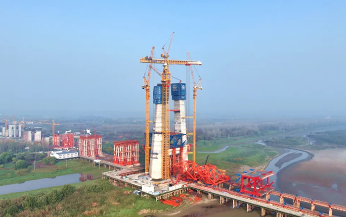 XGT15000-600S塔機(jī)由徐工與中鐵大橋局聯(lián)合研發(fā),是為世界最大跨度公鐵兩用斜拉橋——常泰長江大橋、世界最大跨度三塔斜拉橋——巢馬城際鐵路馬鞍山公鐵兩用長江大橋定制研發(fā)的超級裝備。