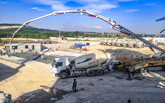 此外,數(shù)十臺(tái)徐工攪拌車也活躍在柬埔寨工業(yè)園區(qū),徐工 HB50V 為園區(qū)基礎(chǔ)地坪地面建設(shè)施工按下 “加速鍵”。