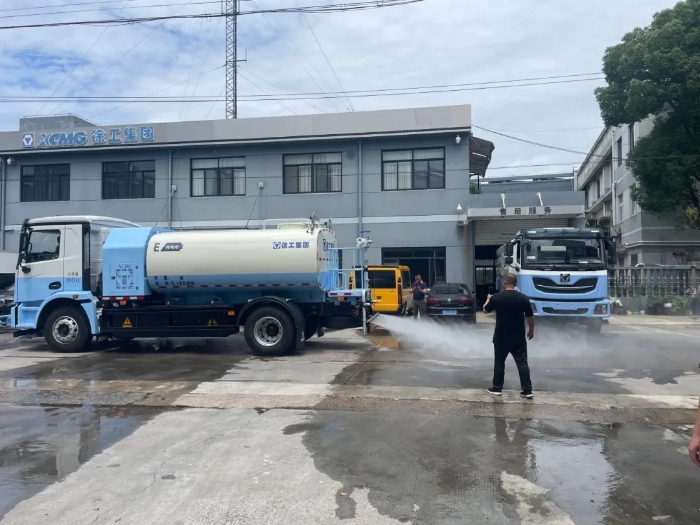 活動現(xiàn)場,徐工純電動高壓清洗車與純電動掃路車協(xié)同作業(yè),成為焦點。純電動高壓清洗車宛如一位精準高效的“清潔能手”,憑借大于8Mpa的高壓水泵及24m的對沖清洗寬度,對道路進行沖洗。無論是頑固的油污、泥沙,還是藏匿在縫隙中的灰塵,都能被迅速沖刷干凈。