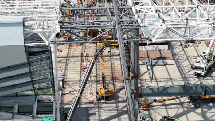 近日,安徽省第二大高鐵客運站合肥西站正式掛牌,其東側(cè)站房金屬屋面正在繁忙的施工中。
