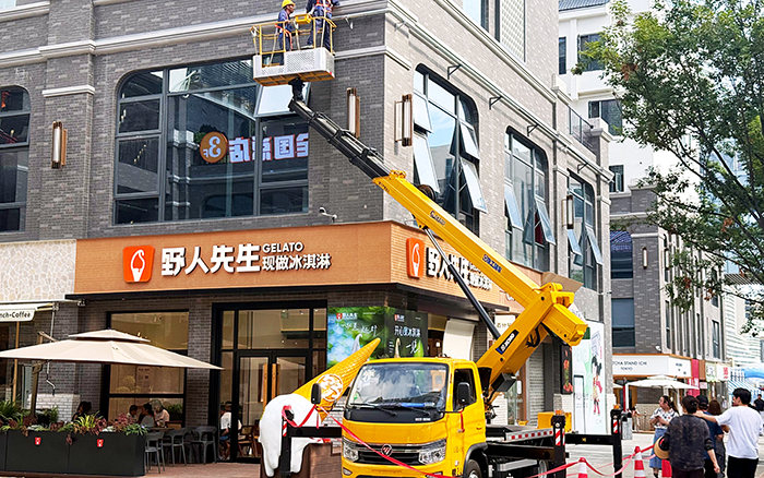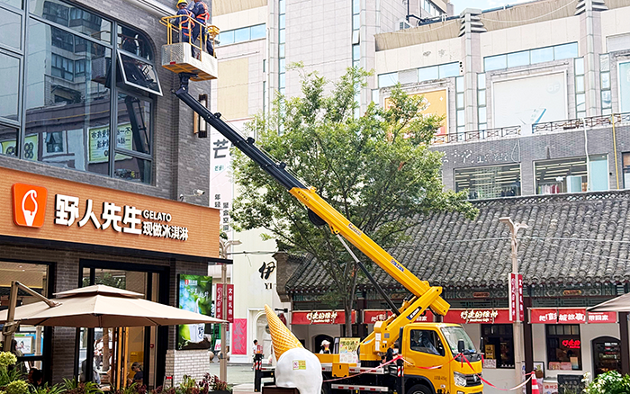 作為藍(lán)牌車型,GKS28 輕松穿梭于狹窄的街區(qū)巷道,無(wú)需復(fù)雜通行審批,到場(chǎng)后迅速進(jìn)入作業(yè)狀態(tài)。施工地周邊商鋪林立、行人如梭,施工區(qū)域被密集人流環(huán)繞,對(duì)設(shè)備的靈活性與安全性提出極高要求。