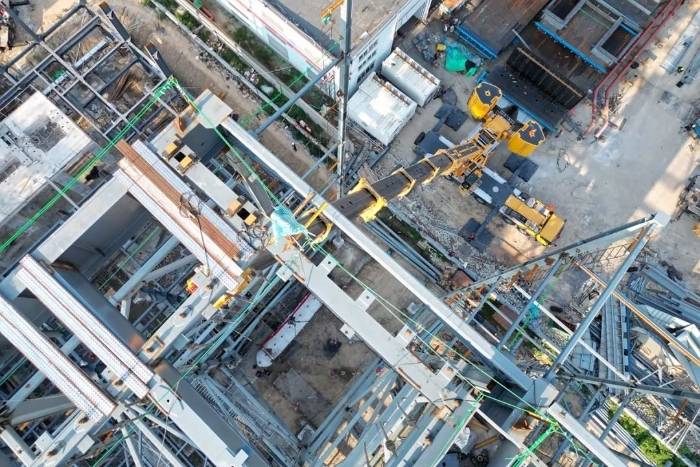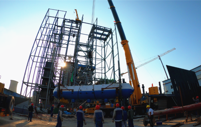 由于場地狹窄,障礙物環(huán)繞,集氣包還需精準送入已建車間內部,車間上方同樣阻礙重重,給施工增加了難度。