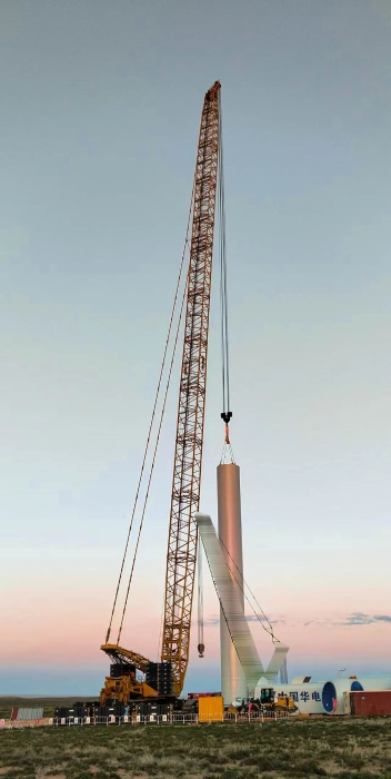 2025年5月,與河北采用195+5m超起工況完成首臺185m風(fēng)機吊裝;