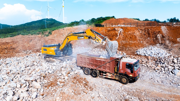 湖北宜城礦區(qū)深處,白云巖資源富集,開采作業(yè)正酣。徐工XE500GK液壓挖掘機以主力姿態(tài)投身于繁忙的開采隊伍當(dāng)中,以卓越性能與可靠品質(zhì),贏得施工方高度認可,成為這片堅硬巖層中名副其實的“掘金巨無霸”。