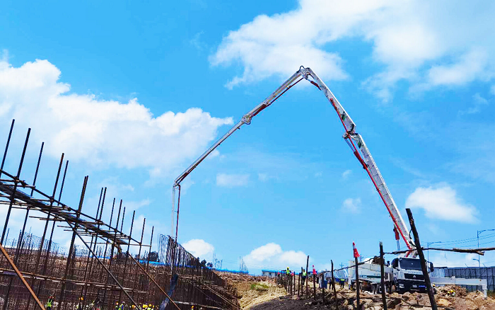 近日,在埃塞俄比亞的斯亞貝巴中地海外項(xiàng)目現(xiàn)場(chǎng),徐工HB58V泵車(chē)擔(dān)當(dāng)施工主力軍。