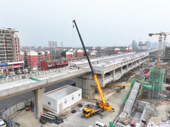 在華中某軌道交通項目現(xiàn)場,徐工G2代XCT50G5-1輪式起重機(jī)以40米主臂工況,穩(wěn)穩(wěn)將兩根長25米、單重1.5噸的軌道板吊運至高架橋基。整個吊裝過程精準(zhǔn)、平穩(wěn)、動作流暢,憑借搭載的吊鉤防擺技術(shù),大幅簡化了操作難度,提升了吊裝平穩(wěn)性與安全性,成為軌道鋪設(shè)中的關(guān)鍵力量。