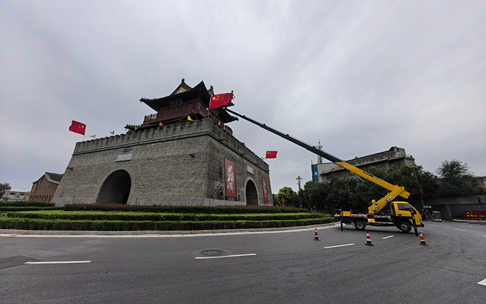 從設(shè)備就位到首面國旗掛好,施工迅速完成。過往市民紛紛駐足拍照,文昌閣周邊的節(jié)日氛圍隨國旗懸掛愈發(fā)濃厚。多重安全保障與高效作業(yè)能力,讓 “中國紅” 在古建筑旁莊重飄揚,也讓愛國情懷隨秋風(fēng)傳遞街巷!