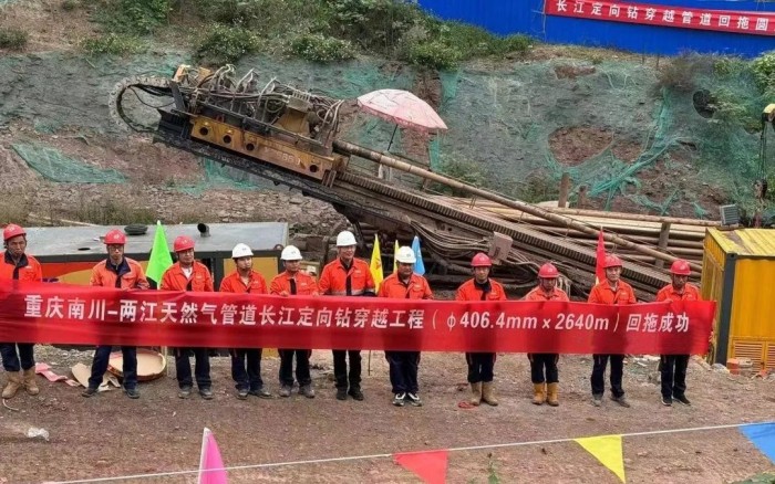 工程橫跨長江,施工路段地表層由粉質(zhì)粘土覆蓋,下層土質(zhì)為泥巖砂巖互層,地質(zhì)復(fù)雜。定向鉆穿越段采用D406.4×10.0 L415M直縫埋弧焊鋼管,穿越長度為2640米,深度達(dá)143米,穿越管道與長江底部最小間距為84.66米。施工設(shè)備的作業(yè)能力、工作效率都面臨非常大的考驗(yàn)。