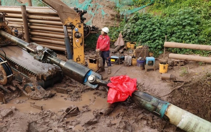 兩臺(tái)徐工水平定向鉆機(jī)協(xié)同作業(yè)