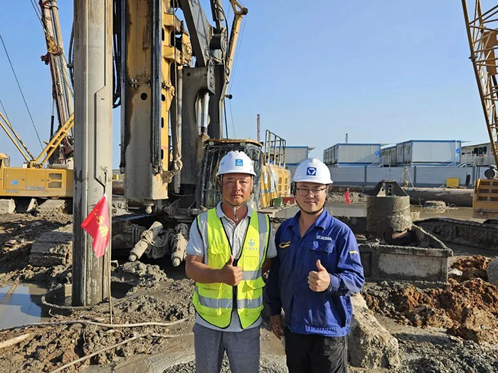 旋挖鉆機(jī)群不間斷施工的同時(shí),徐工技術(shù)人員與服務(wù)團(tuán)隊(duì)全天候走訪巡檢,有力保障項(xiàng)目工期節(jié)點(diǎn)。